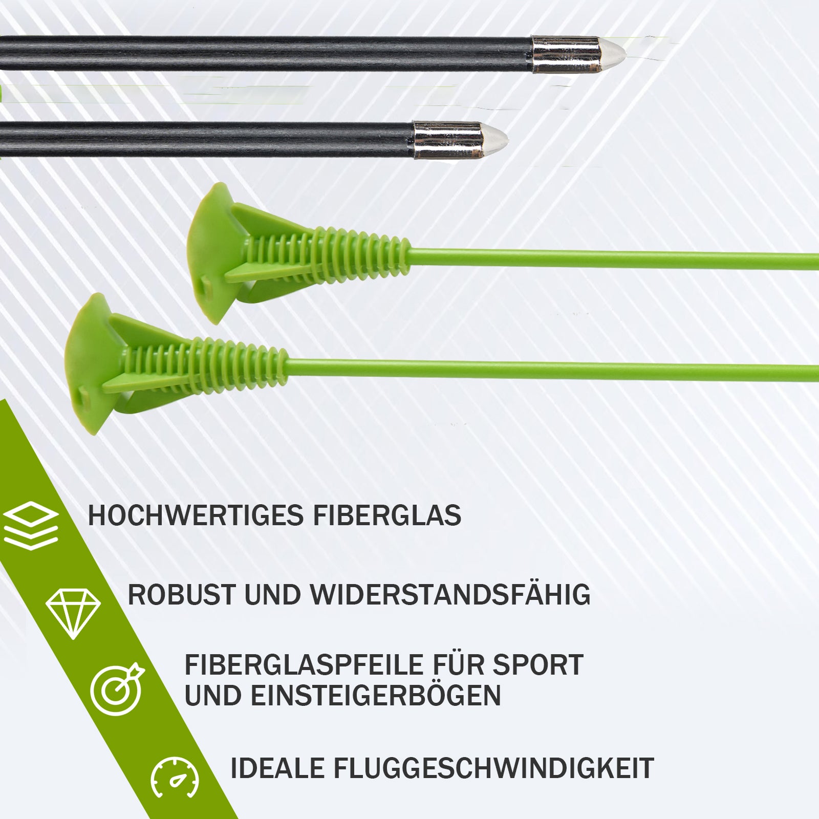 Ein komplettes Set mit allem Zubehör! – Keine zusätzlichen Anschaffungen erforderlich!! Das perfekte Bogenschießset für Kinder und Jugendliche, bestehend aus 1 Bogen, 12 Glasfaserpfeilen, 4 Saugnapfpfeilen, 1 Silikon-Fingerschutz, 1 Bogensicht und 1 Köcher.