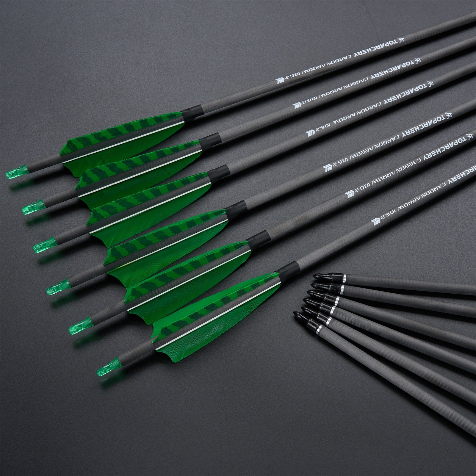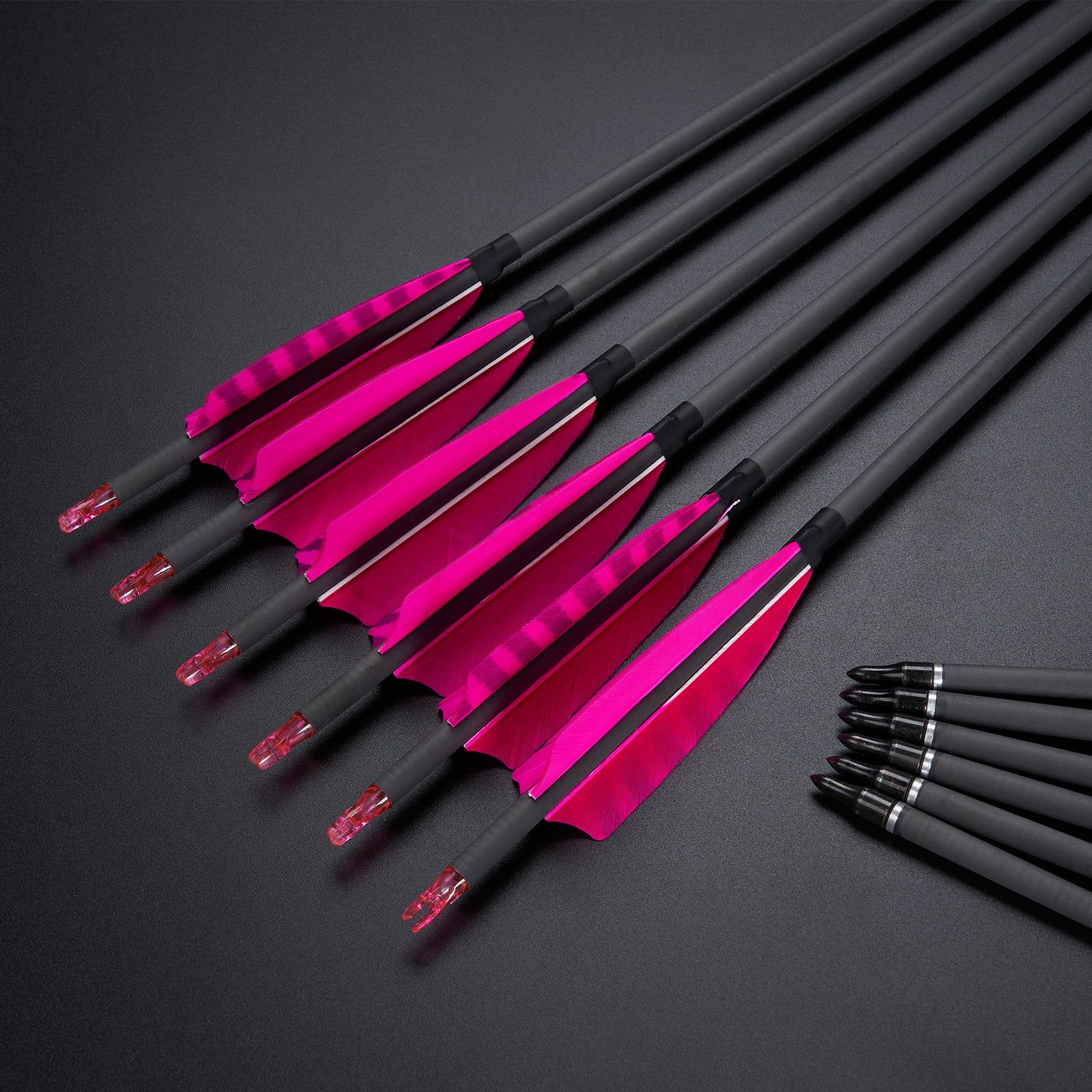 Huntingdoor 12 er 33 inch carbon pfeile für recurvebogen mit Farbenfrohe Federn