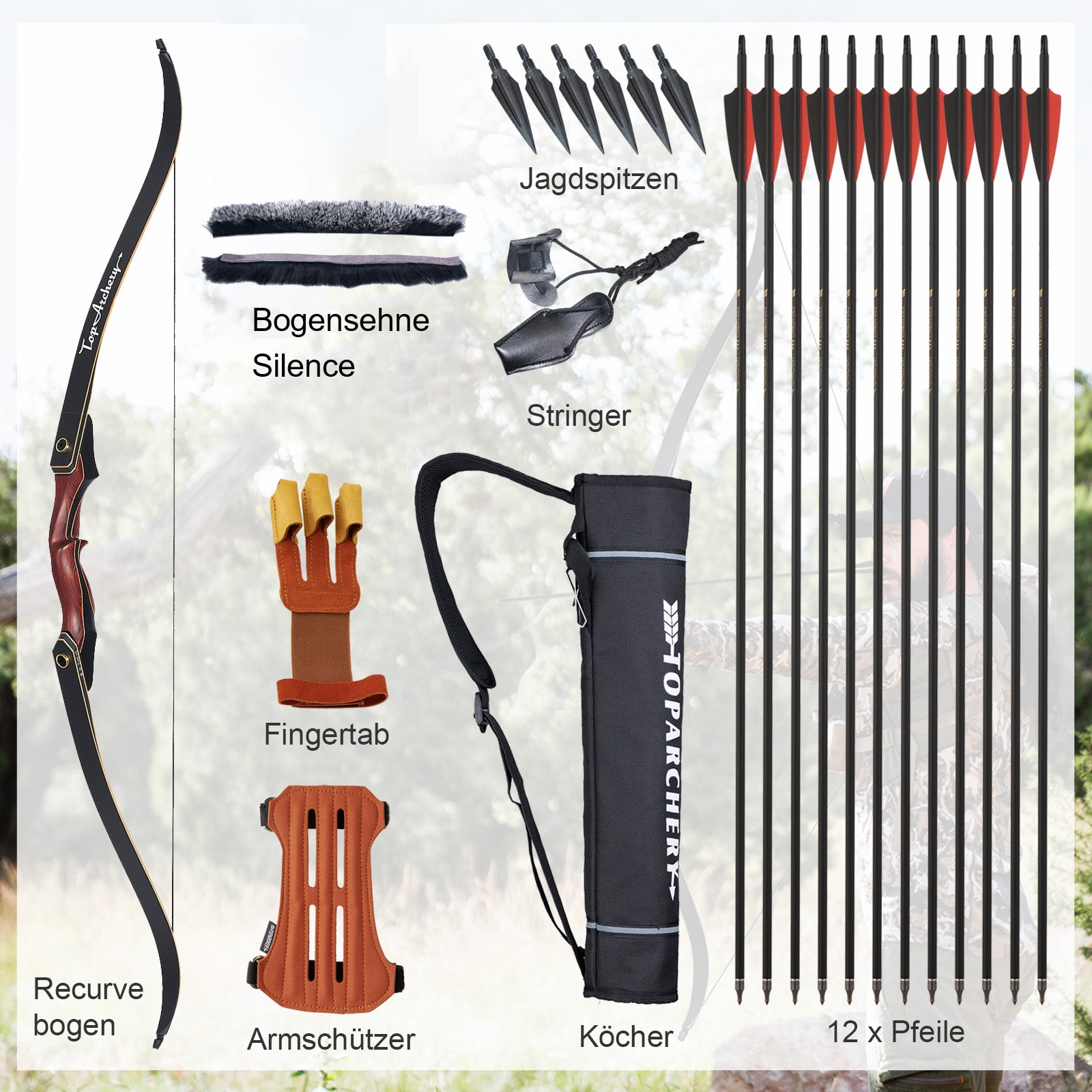 60 zoll Recurvebogen set für 3D-Waldbogenschießen – Pfeil und Bogen für Erwachsene